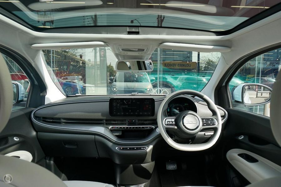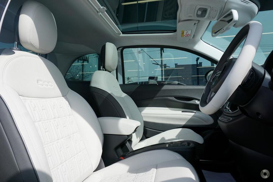 500e La Prima is fully optioned with Proximity key entry, Heated seats, Panorama Sunroof, Rain Sensing Wipers, Auto Lights, Smartphone Mirroring, Wireless Charging and Fiat Co-pilot Intelligent Cruise control with Traffic sign recognition.